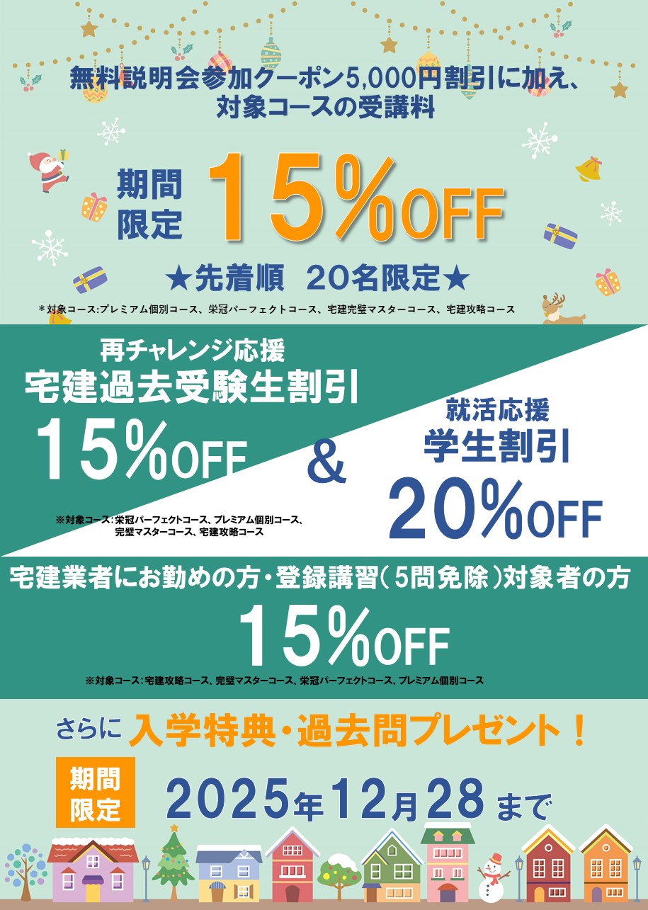 - 【2026年度受験用】11月中旬から宅建合格講座のご相談を承ります。説明会・個別カウンセリングは完全予約制となります