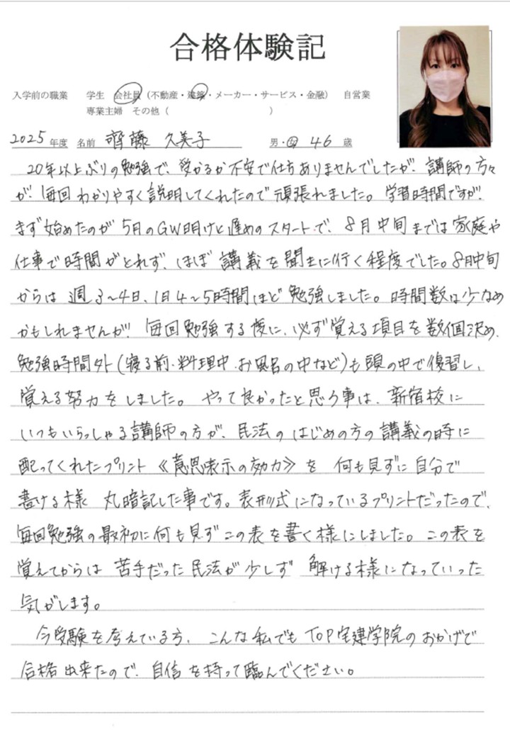 2025年度宅建試験を終えた受講生様より嬉しいご報告が届きました!合格おめでとうございます!!